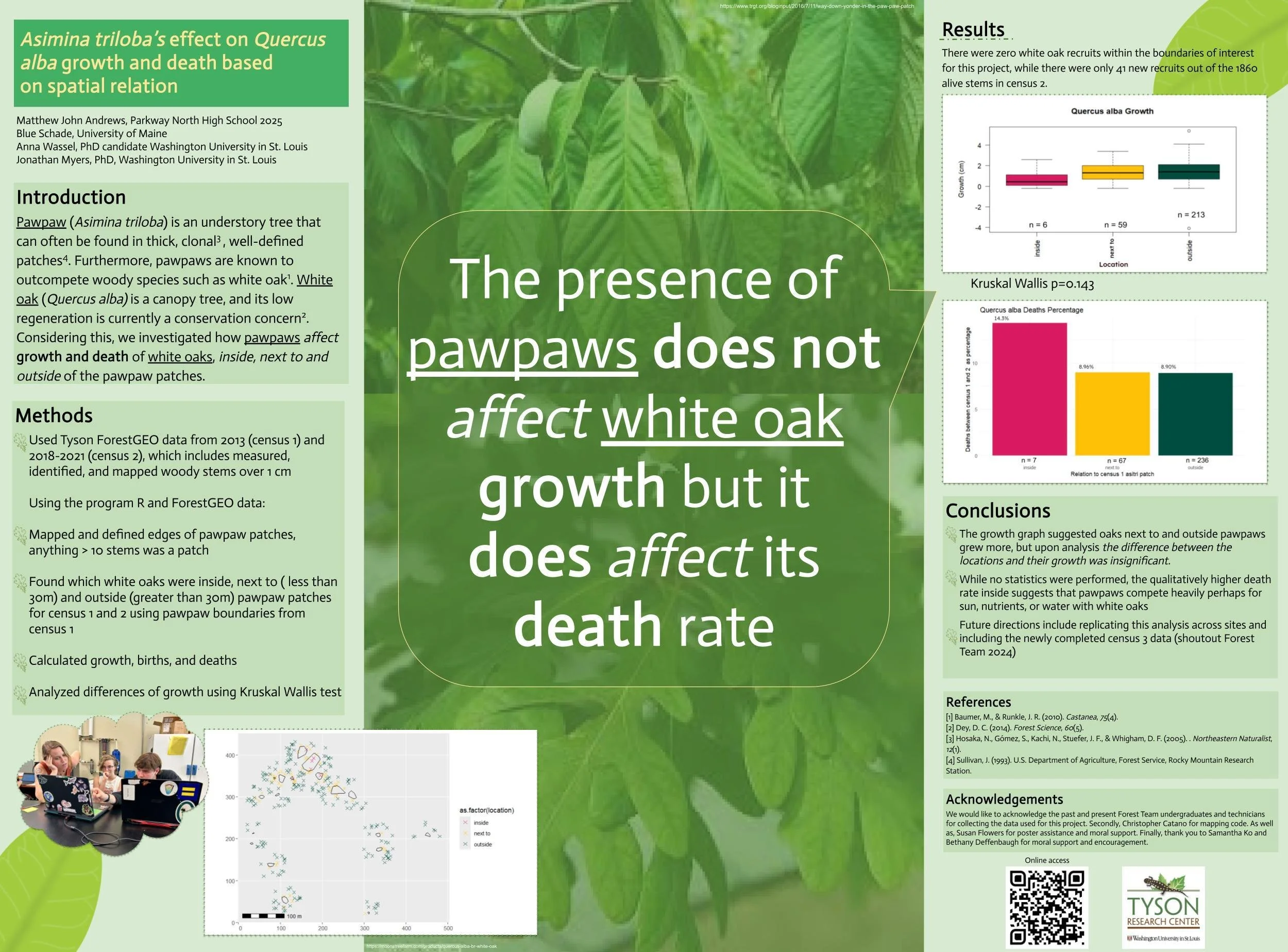 Asimina triloba’s effect on Quercus alba growth and death based on spatial relation