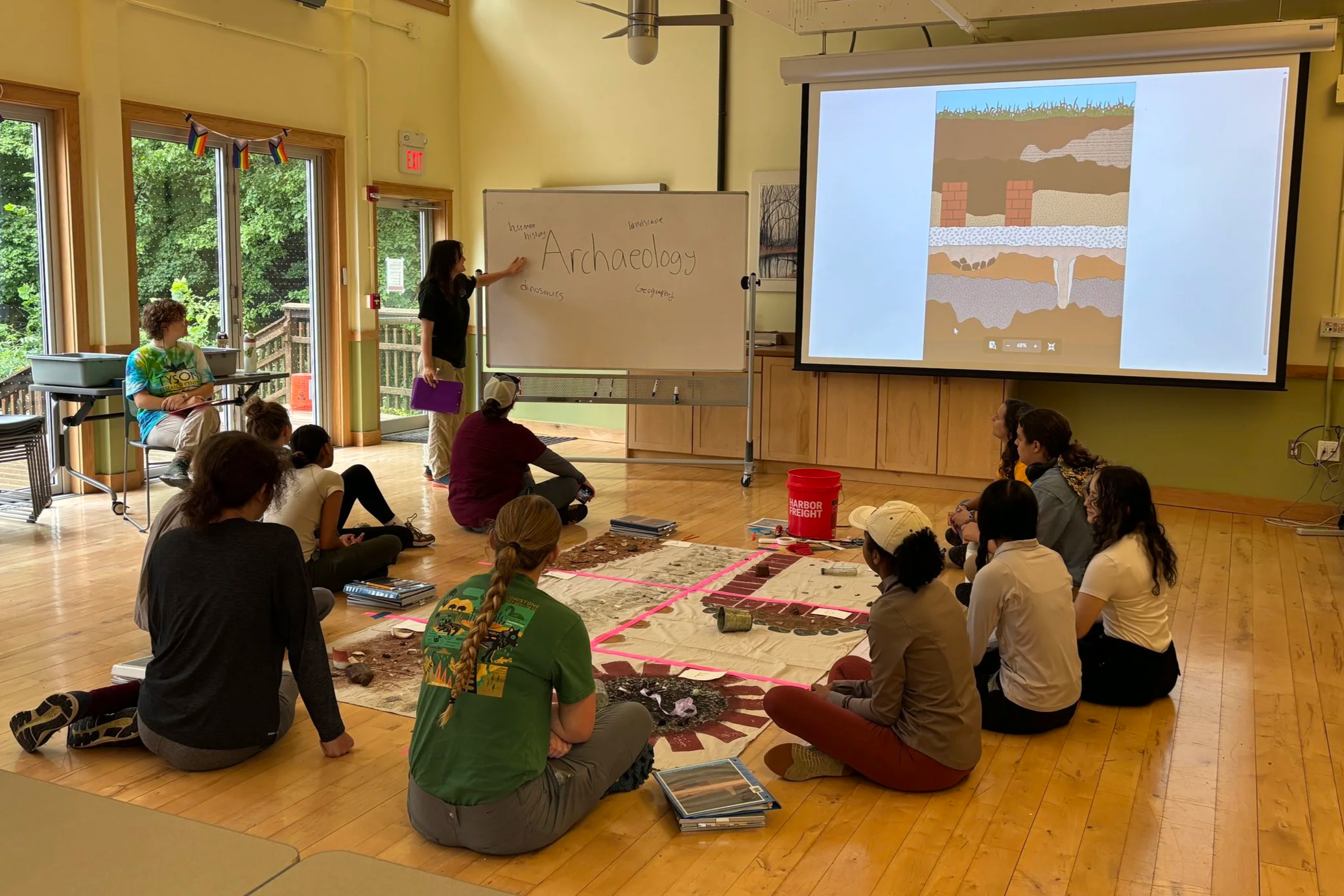Team Humans fellows teaching high school students the basics of archaeology before going in the field