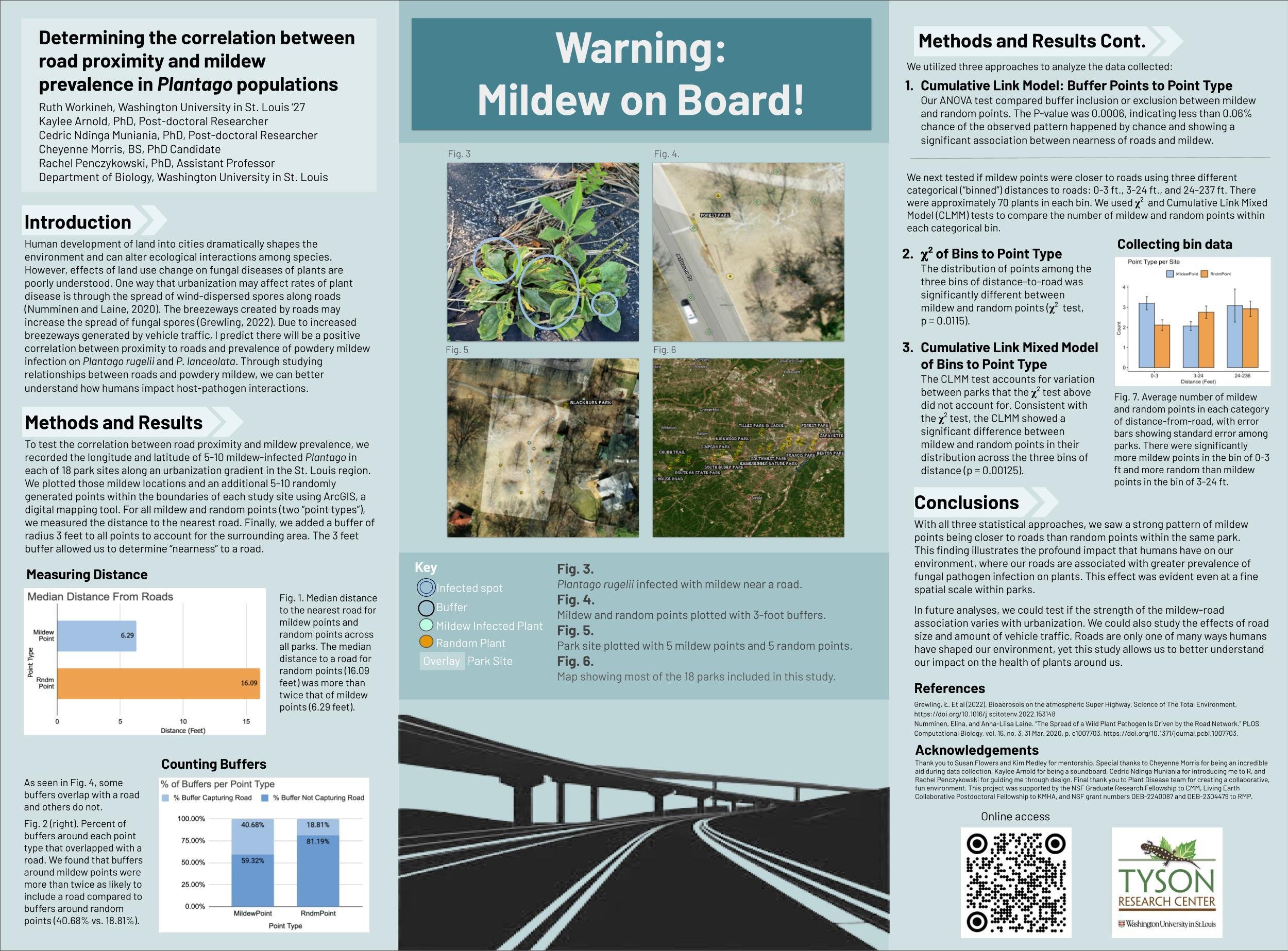 Determining the correlation between road proximity and mildew prevalance in Plantago Rugelii